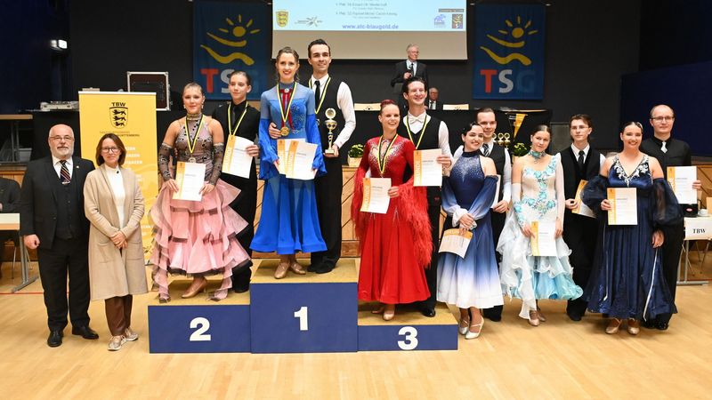 Wir steigen ins Turniergeschehen ein: Mit elf Paaren der Hauptgruppe D Standard begannen die Landesmeisterschaften in Heilbronn am Samstagvormittag. Bassit Agbéré/Julia Kesch ertanzten sich mit allen ersten Plätzen den ersten Titel des Wochenendes. Aleksei Bulgakov/Alisa Edigareva sicherten den Vizemeistertitel. Leon Larsen/Tessa Philippa Brettschneider ertanzten sich die Bronzemedaille.