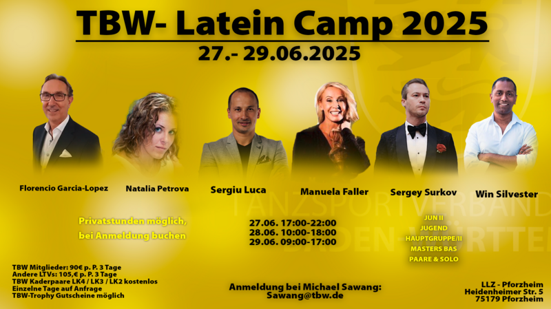 07. – 08. März 2026 TSC Astoria Karlsruhe Bürgerzentrum-Südstadt, Karlsruhe | 02. – 03. Mai 2026 1. TC Ludwigsburg Rundsporthalle Ludwigsburg |
