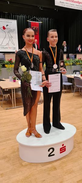 Eine kleine Überraschung brachten dann die Deutschen Meisterschaften der Junioren II B Latein. Die Landesmeister Marco Nepitella/Chiara Rapino (TSC Rot-Weiß Öhringen) schafften es nicht in das Finale, dafür aber die Vize-Landesmeister Maximilian Bier/Erika Weckerle (TSZ Stuttgart-Feuerbach). Nach einer tollen Leistung wurden sie mit Silber belohnt und sind damit Deutsche Vizemeister.