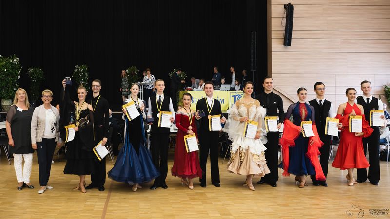 Mit Livemusik und abendlicher Ballatmosphäre eröffneten nach der Begrüßung des Gastgebers die am Nachmittag ermittelten Finalpaare der Hauptgruppe A Standard den Ball. Klare Gewinner dieses Turniers und damit Landesmeister wurden Simon Pozarski/Carolin Böck vom Schwarz-Weiß-Club Pforzheim, die sich im weiteren Verlauf des Abends gleich noch der Konkurrenz in der Hauptgruppe S stellen sollten.